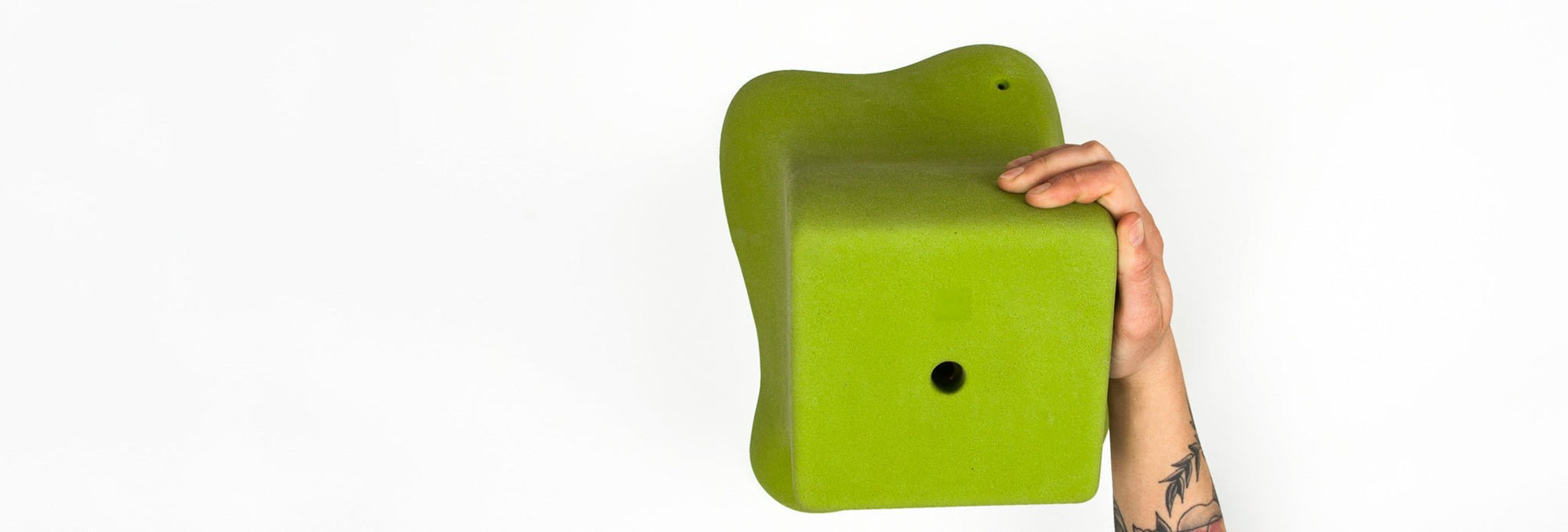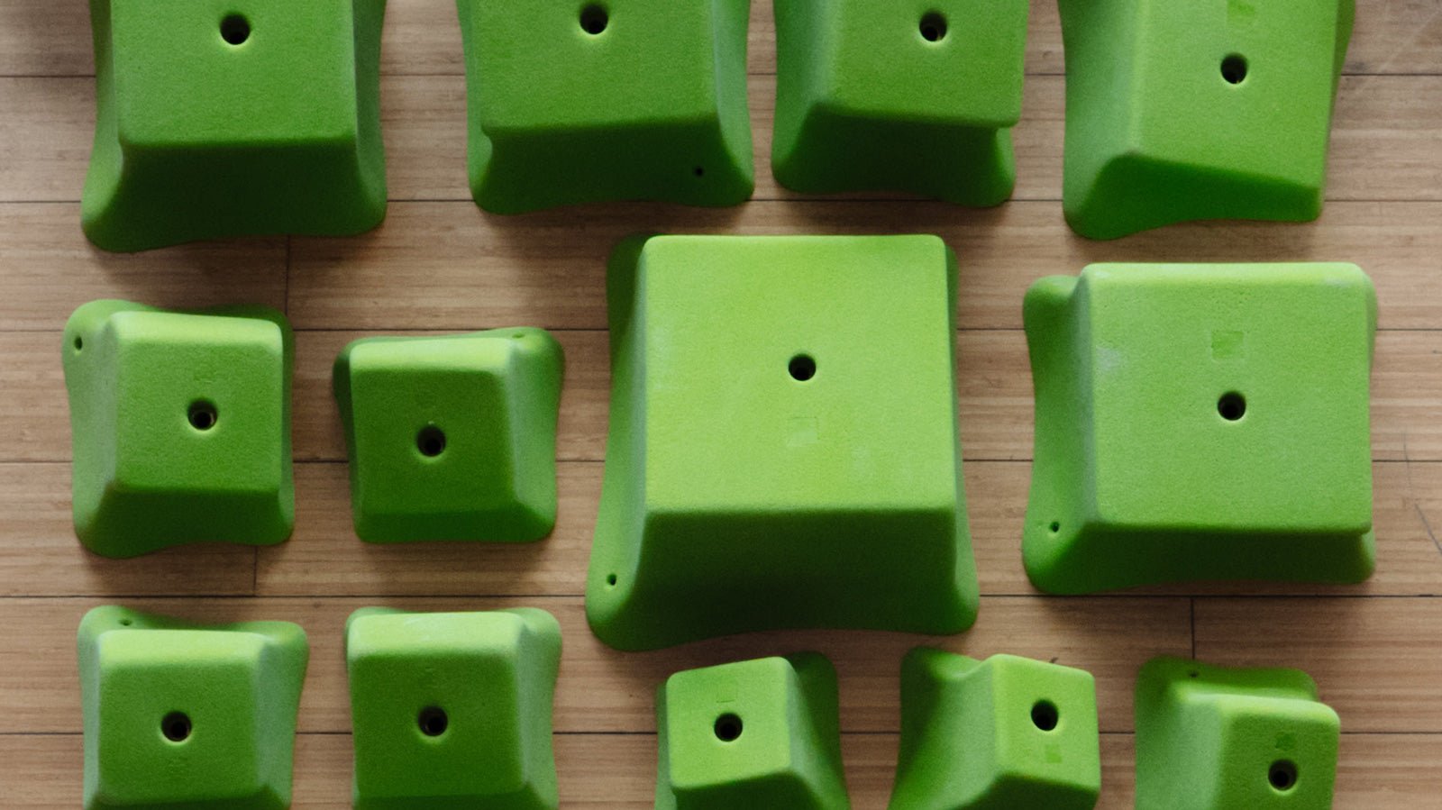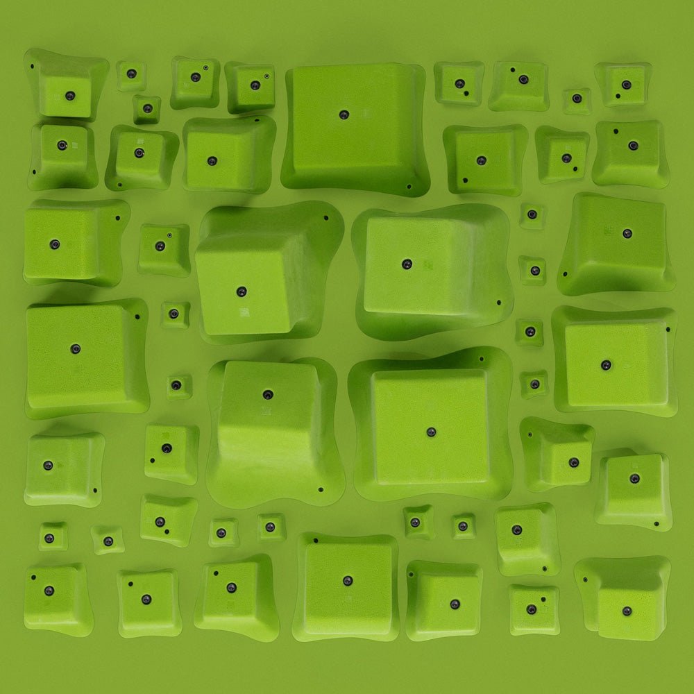 Protruding cubes that lean out from the wall at different angles. With a slopey side and a curved side, this family is one of the most versatile in our line.