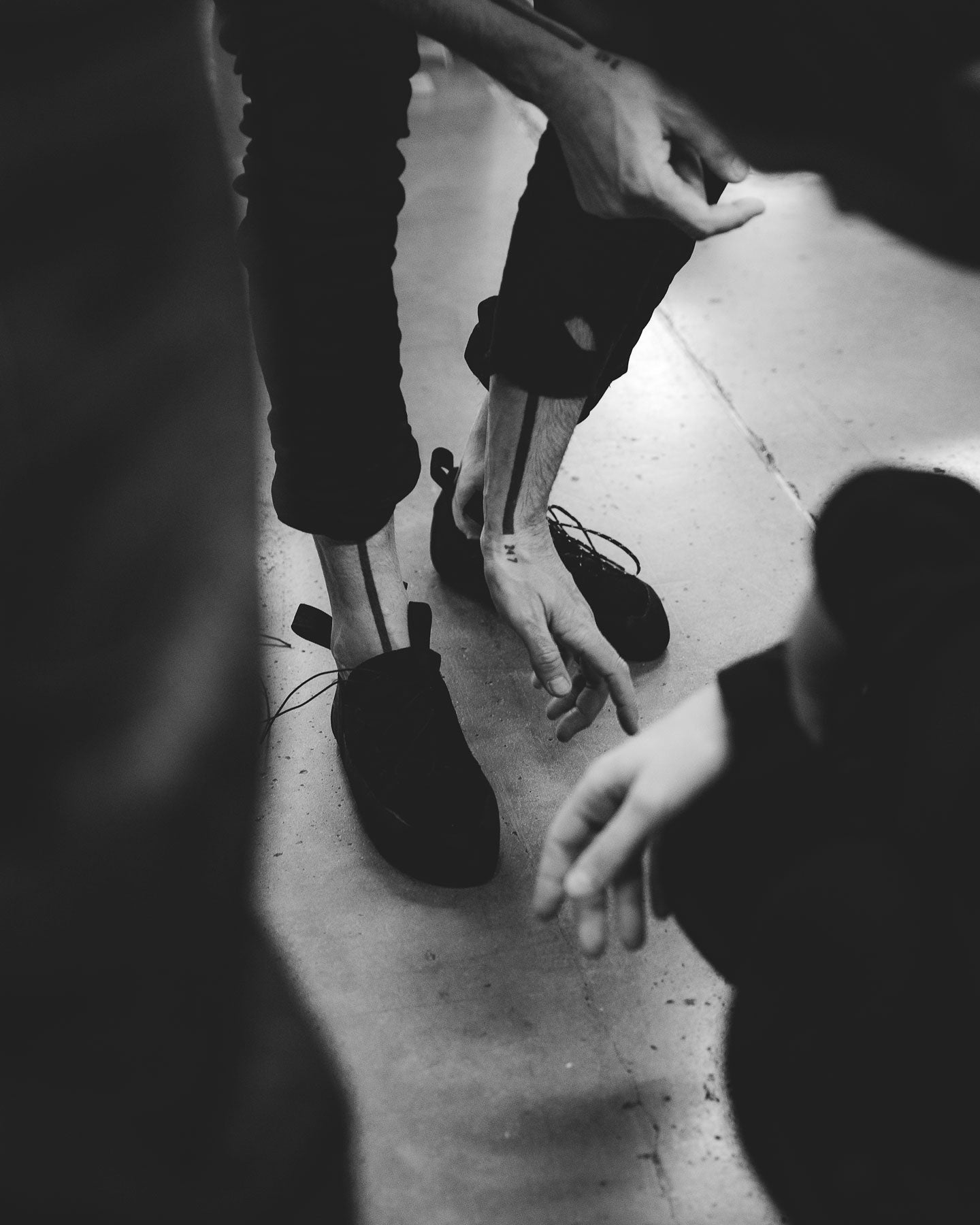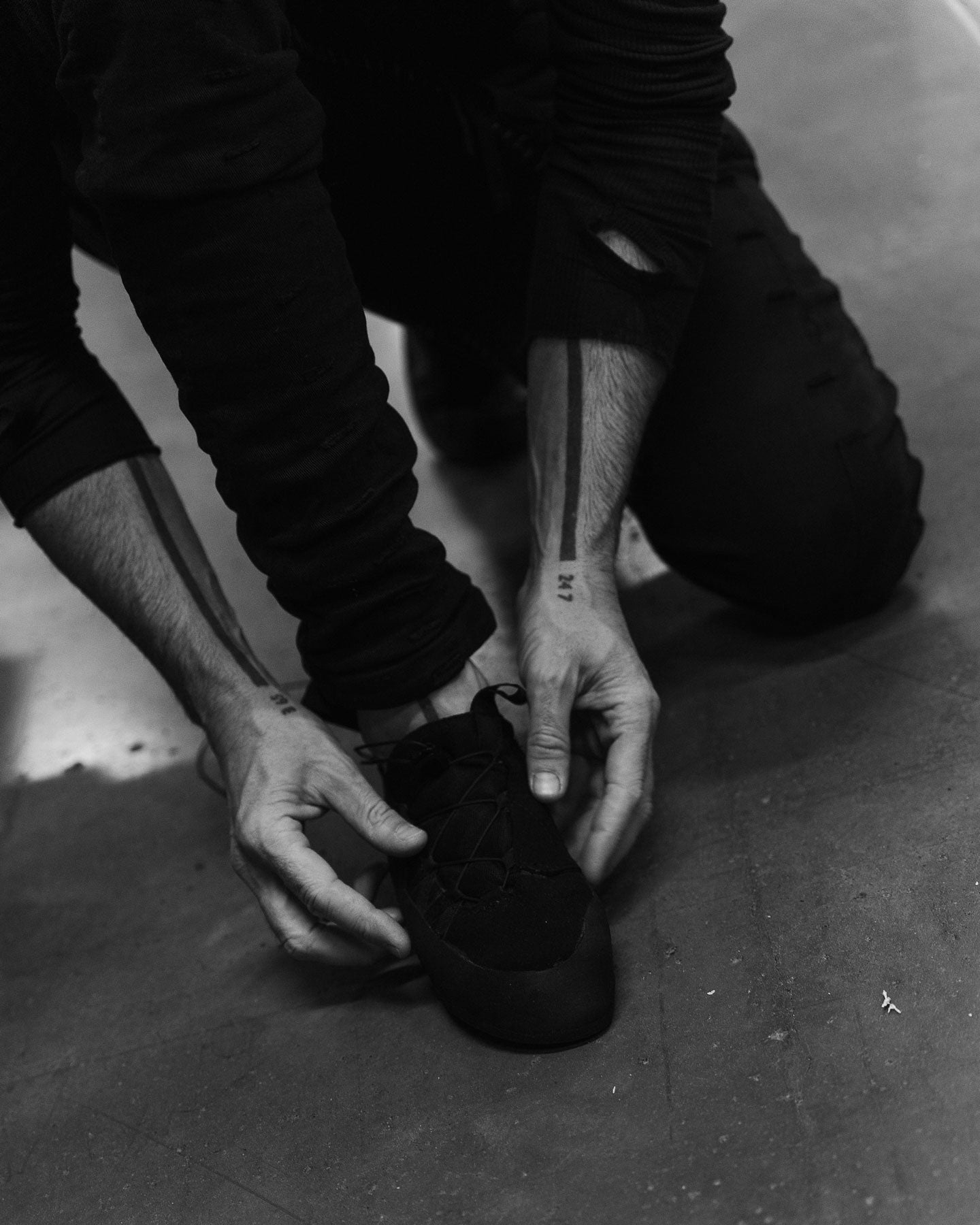 Designer Boris Bidjan Saberi examines the closure for Athletic Bouldering 1