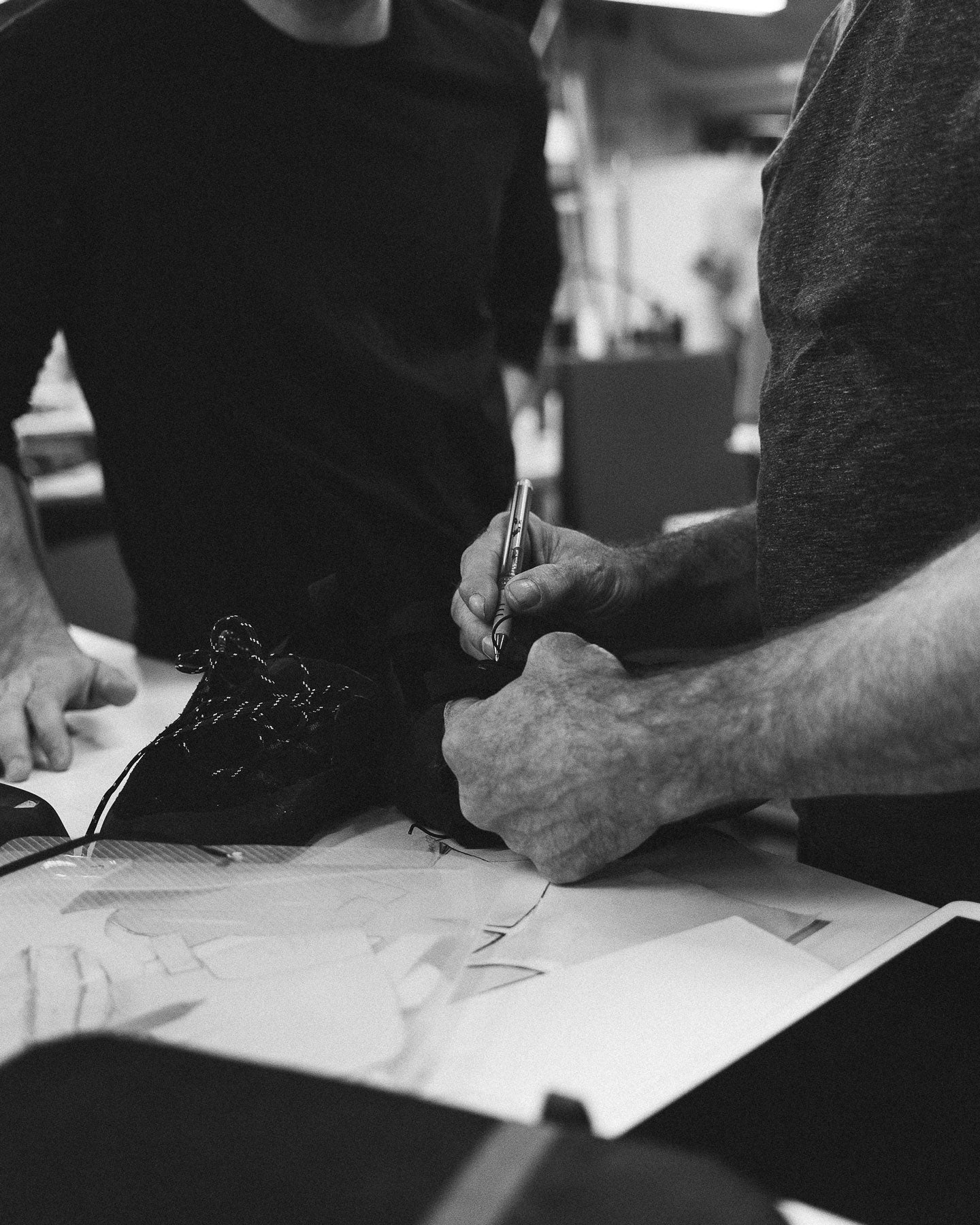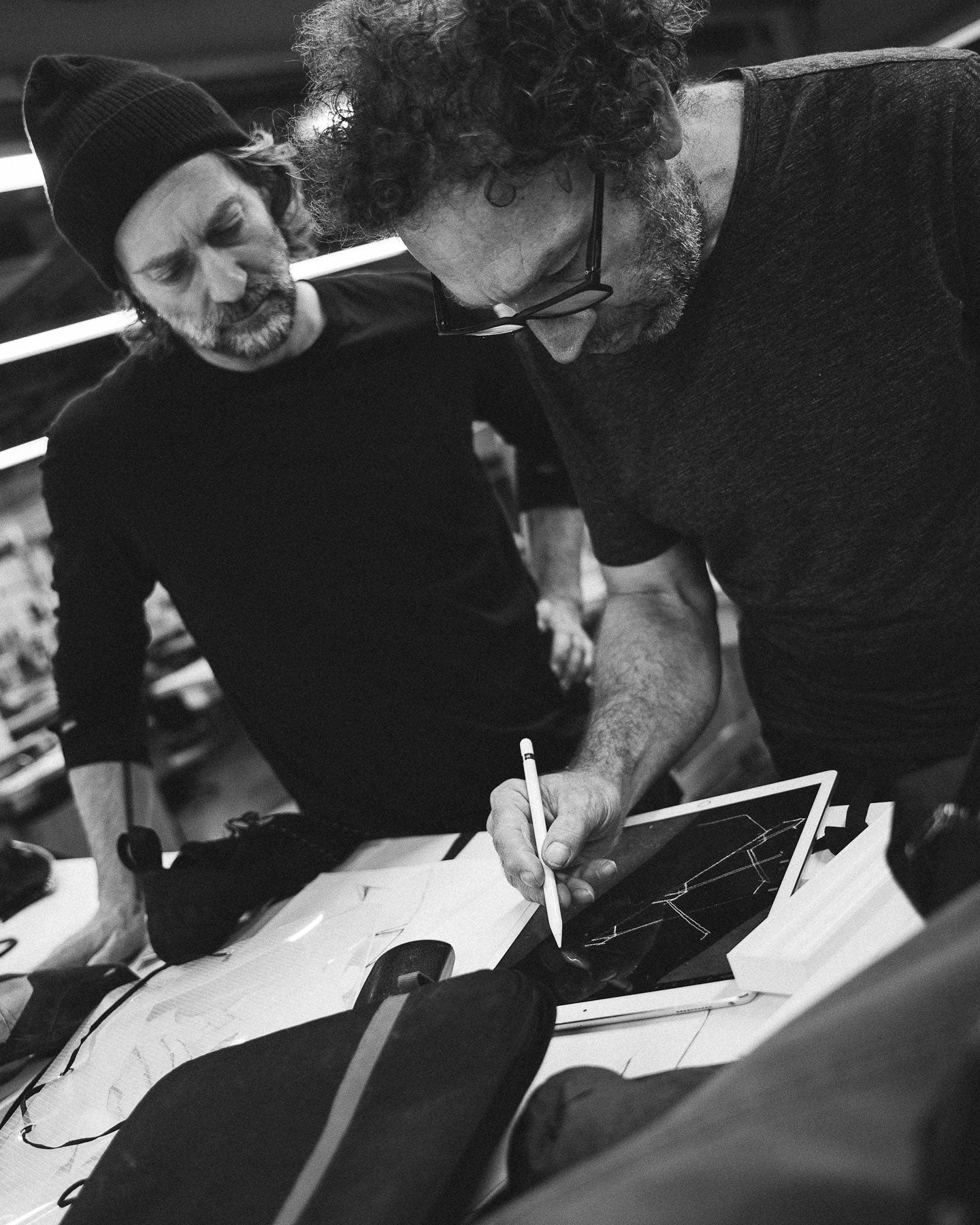 Boris Bidjan Saberi & Fred Nicole patterning Athletic Bouldering 1 prototypes.